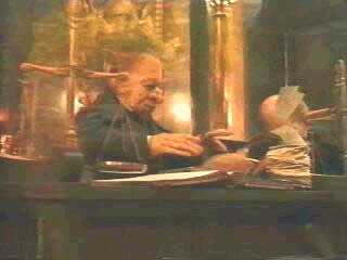 This analysis attempts to demonstrate that there are more connections to Jewish stereotypes in this scene than just the obvious superficial ones of the facial features of the Gringotts bankers. Embedded in the set are Jewish symbols with a strong connection to historic anti-Semitic symbolism, which are utilized in such a way as to create a visual story which could leave the viewer with possibly subconscious or reinforce conscious negative feelings toward Jews. |