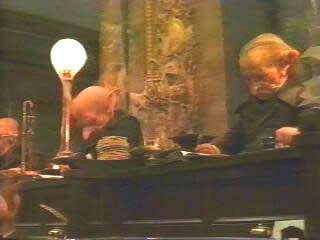 Below: Compare a 12th century English anti-Semitic cartoon depiction of money changers (bankers) with a 21st century depiction of some bankers. It seems this viewpoint hasn't really changed all that much in 800 years. And then compare 20th century Nazi anti-Semitic cartoons which happens to resemble some of the other bankers in the Harry Potter film. Curious how there are two different physiques of the bankers within this film which coincidentally resembles both anti-Semitic stereotypes of Jews. - - This doesn't seem very accidental or coincidental. Below are side by side instances where the Harry Potter bankers are compared to historical anti-Semitic imagry. |